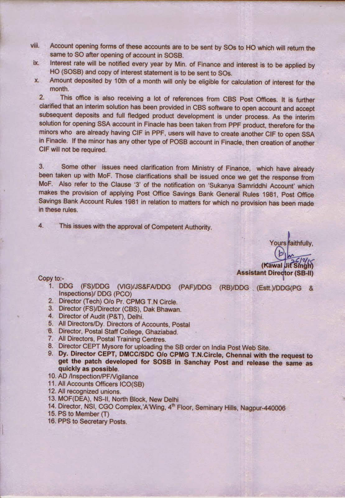Addendum to SB Order No.2/2015- "Sukanya Samridhi Account"